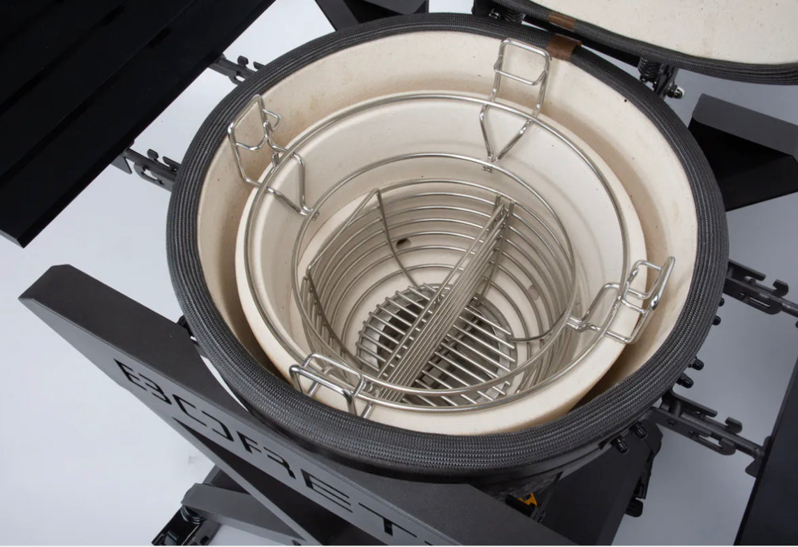 - 2 halve maan gietijzeren roosters en 2 halve maan roestvrijstalen roosters