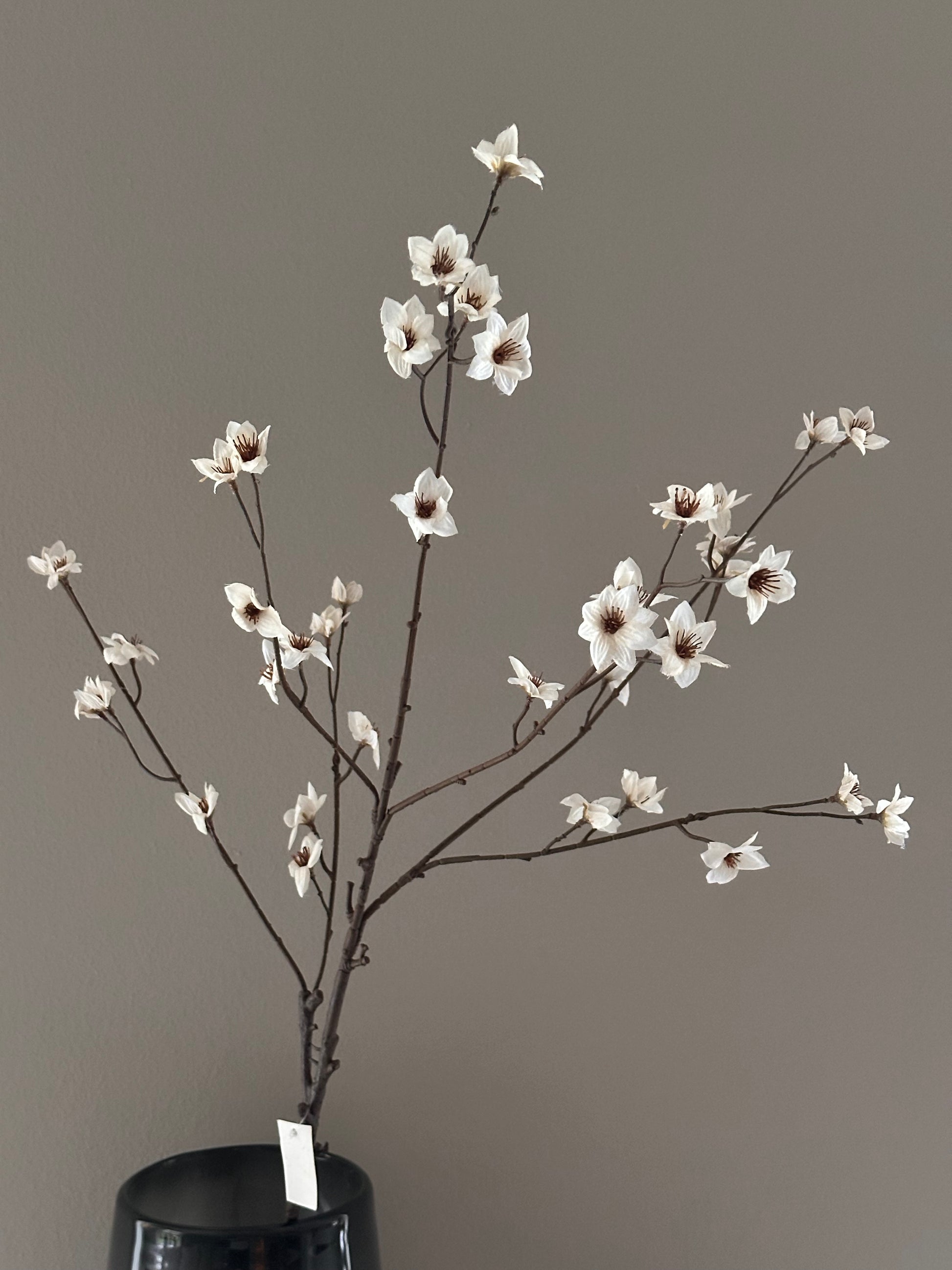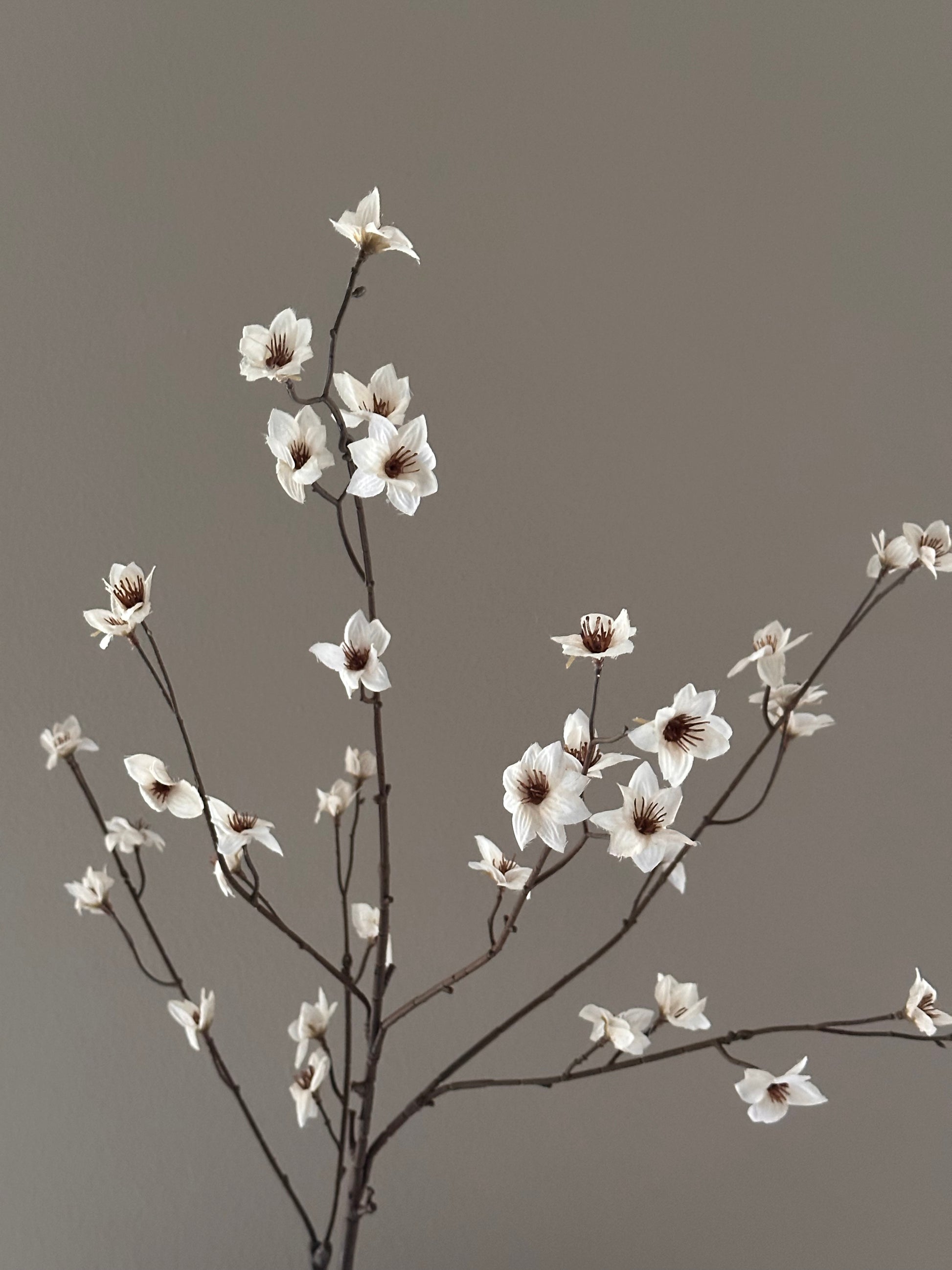 Breng een vleugje rust en verfijning in huis met deze delicate bloesemtak. De fijne vertakkingen en subtiele roomwitte bloemetjes zorgen voor een natuurlijke, serene uitstraling die moeiteloos past in elk interieur – van modern tot landelijk.