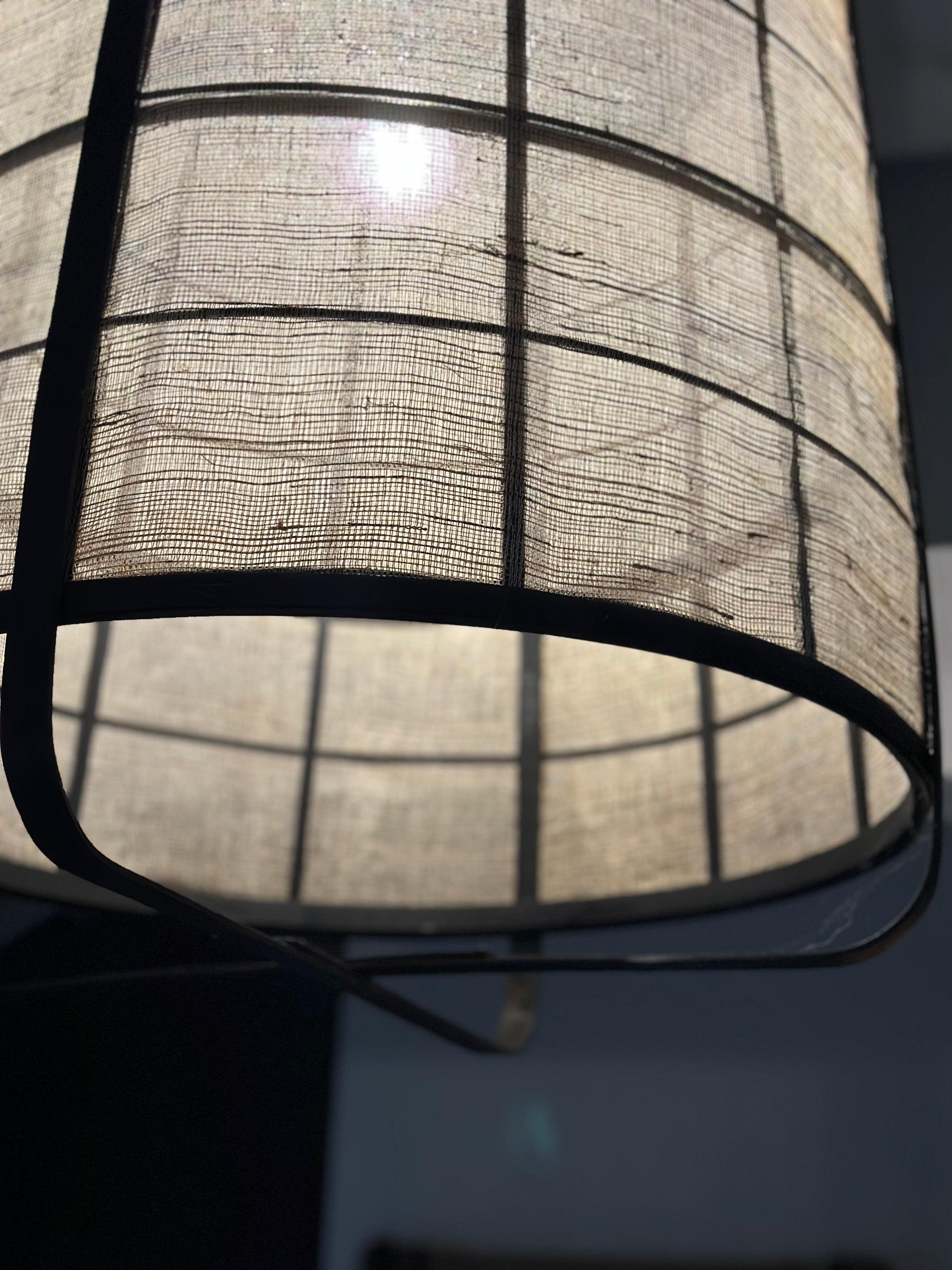 Met deze stoere lamp van natuurlijke materialen heb jij een echte eyecatcher in huis. Door de linnen bekleding wordt het licht mooi gefilterd wat een zachte en warme sfeer geeft.