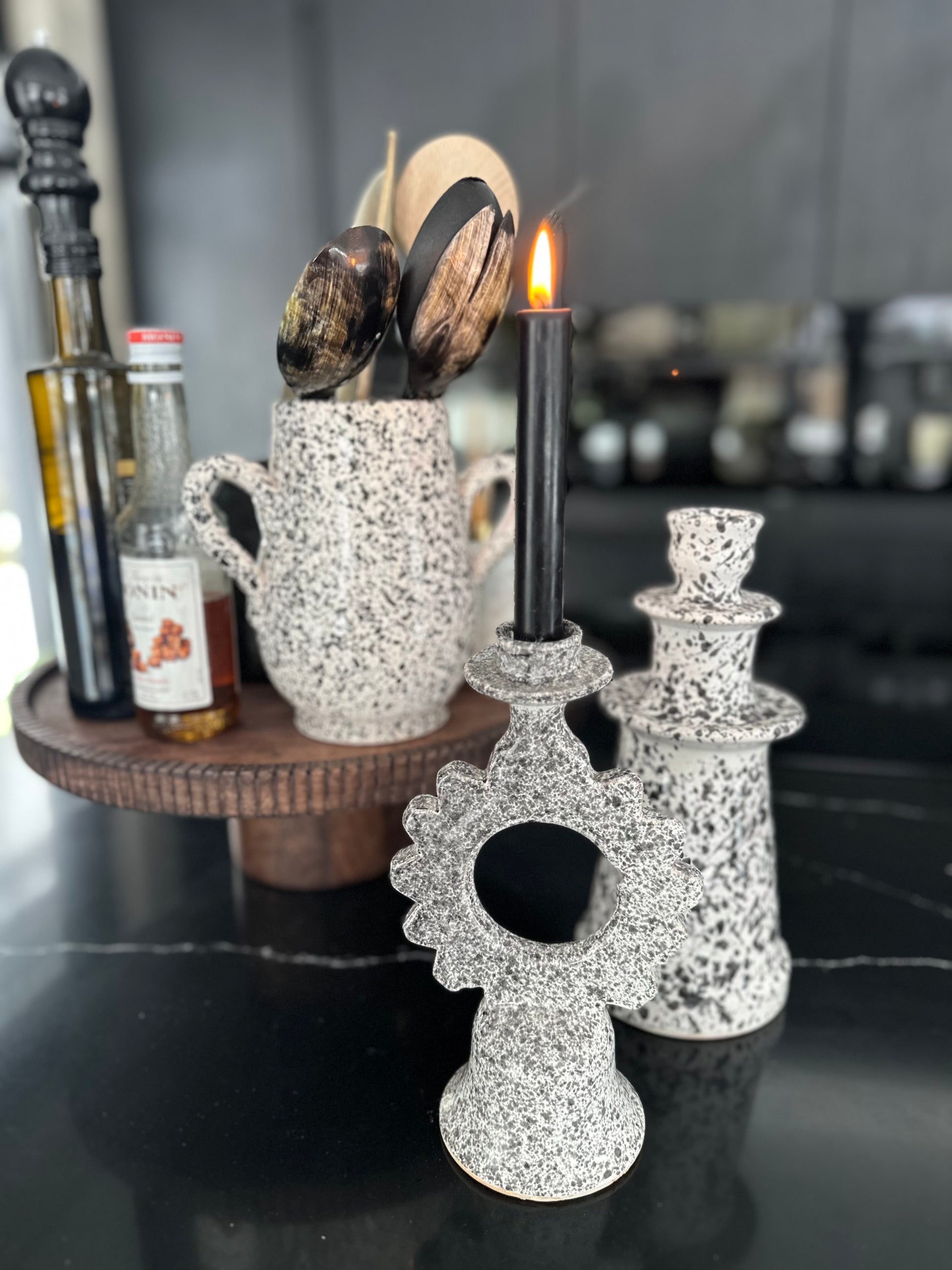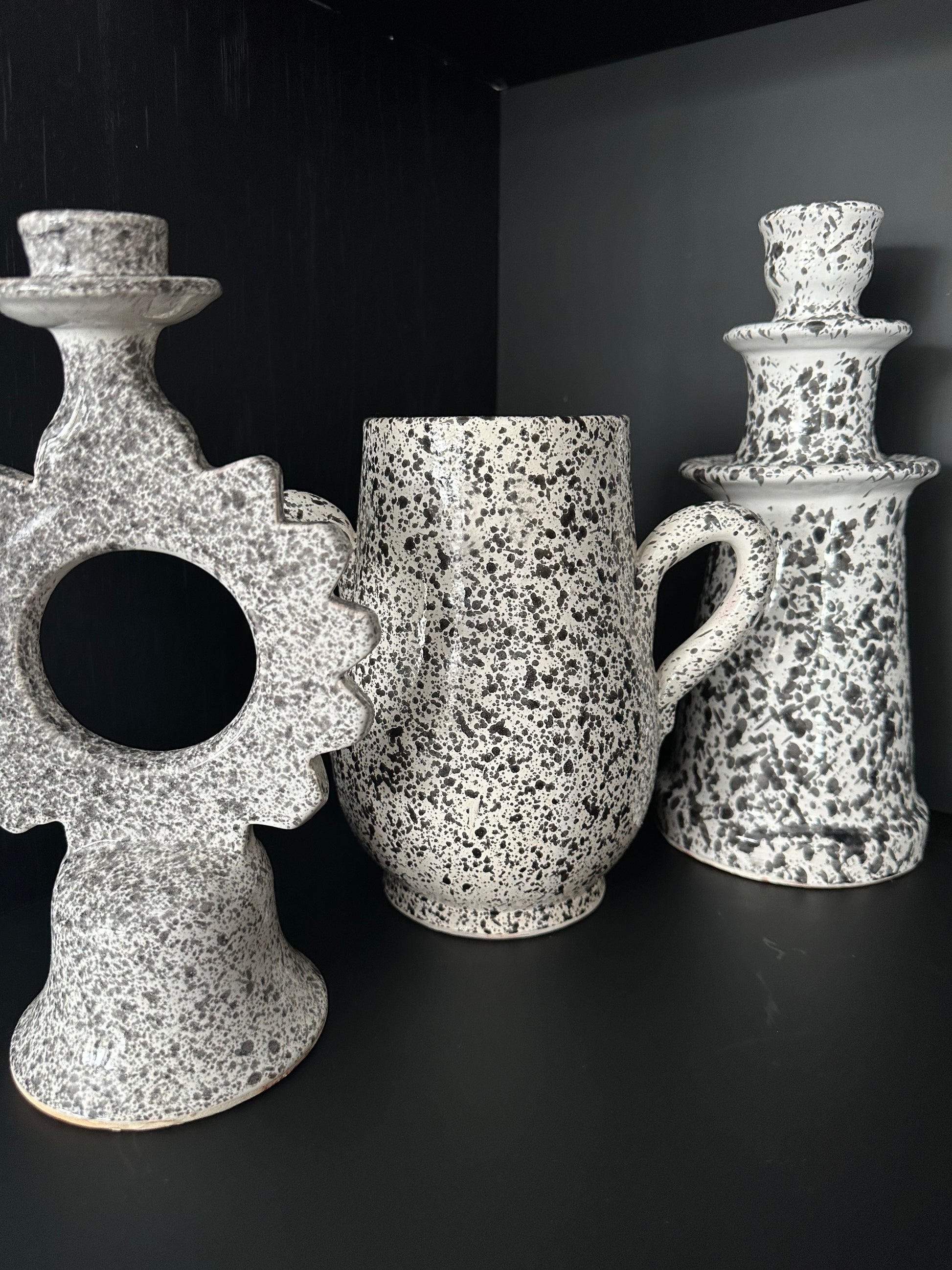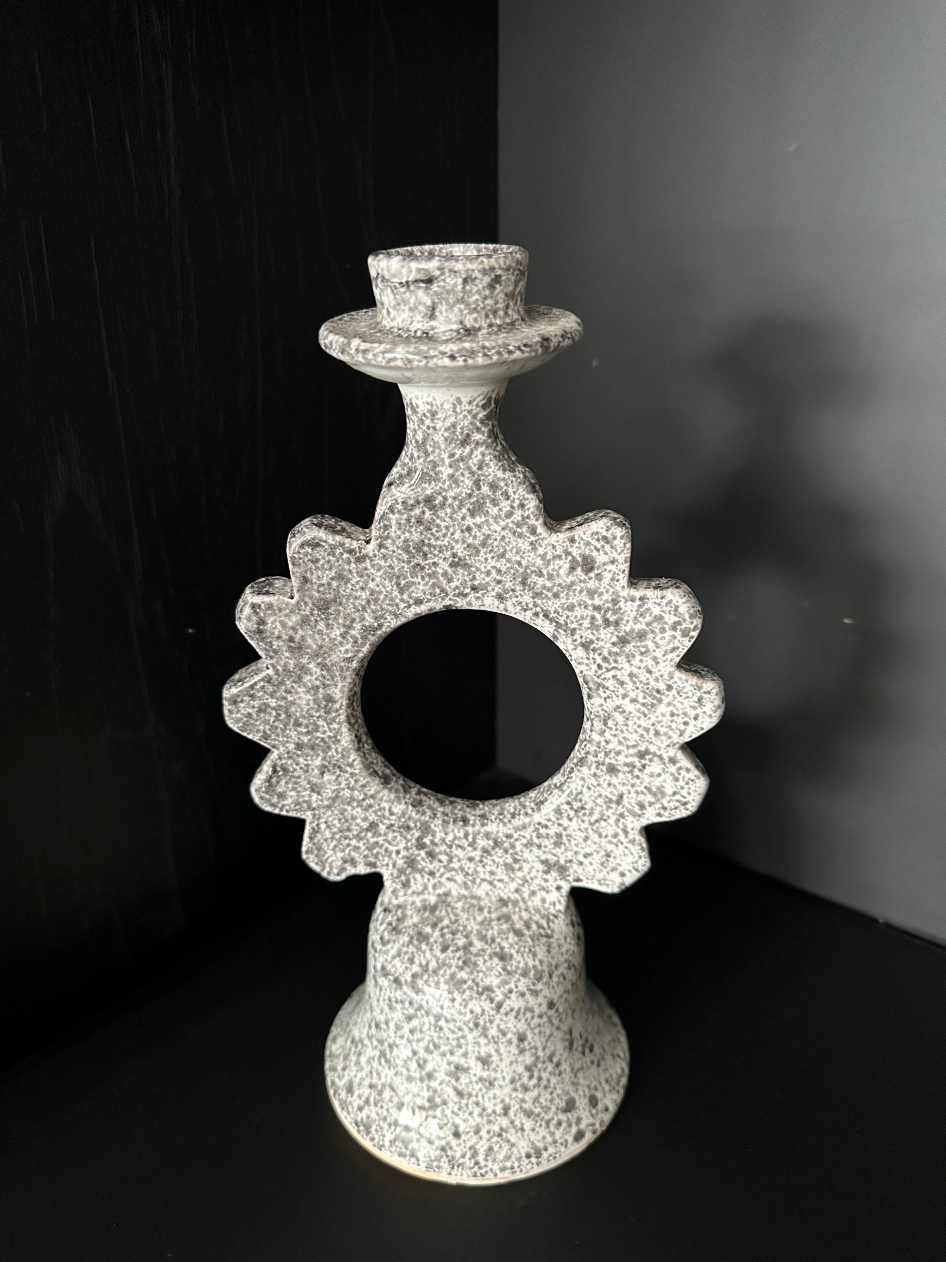Zwart witte kandelaar van aardewerk.