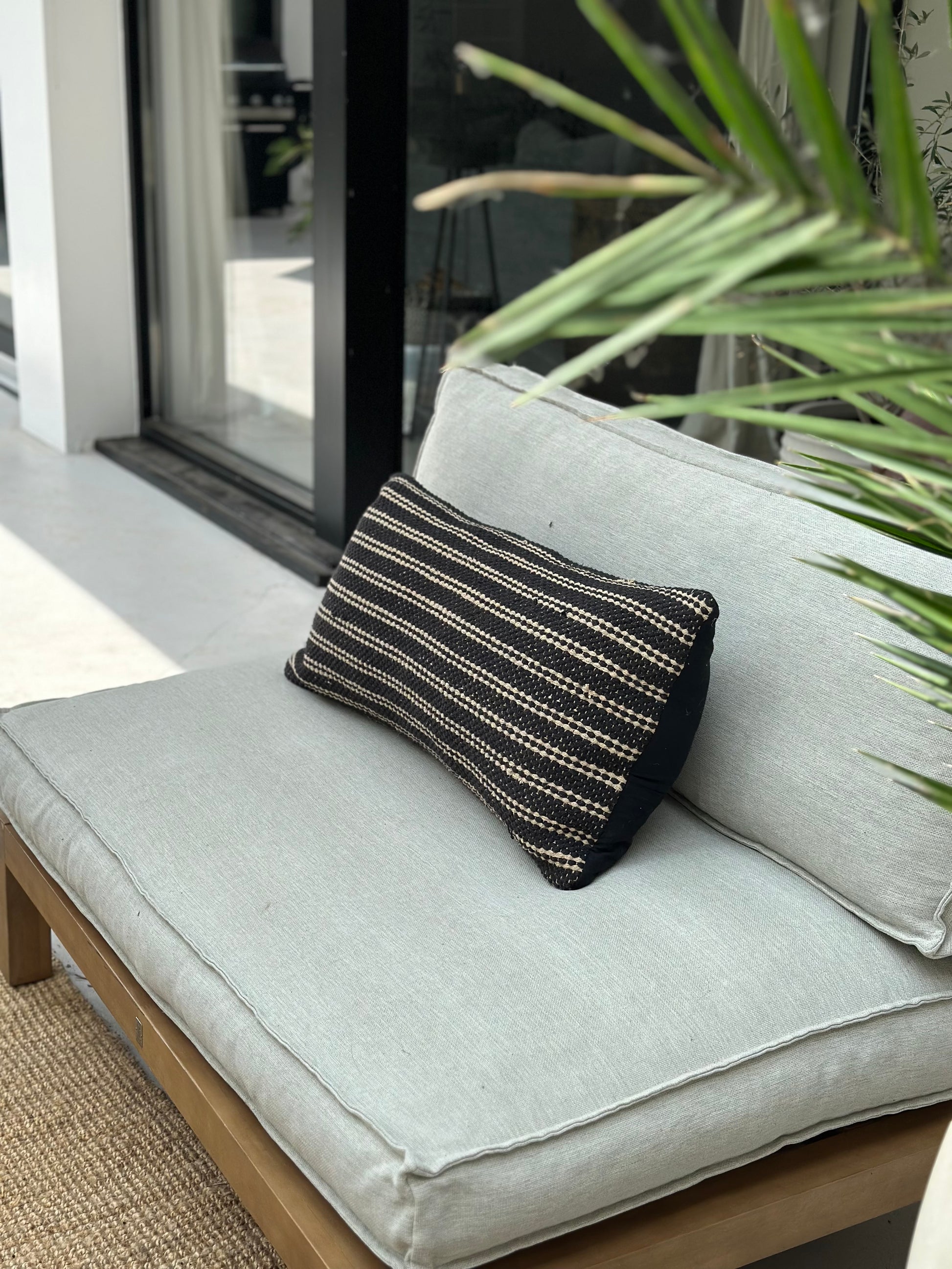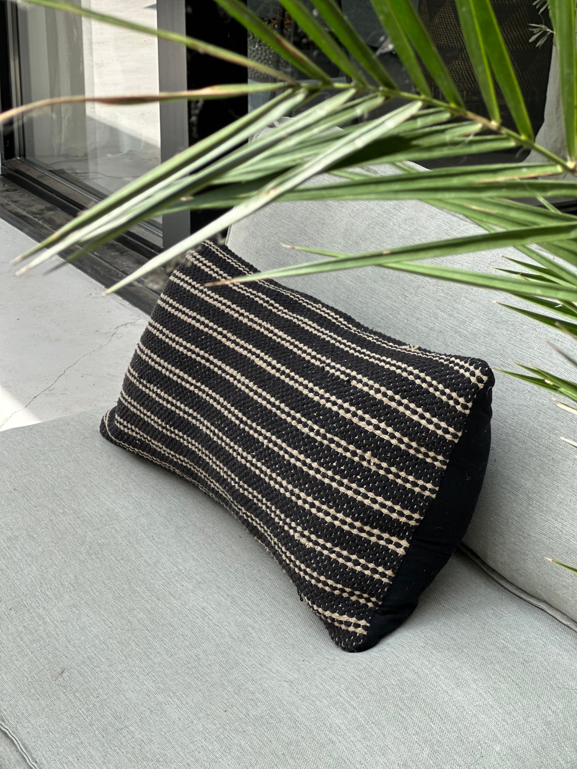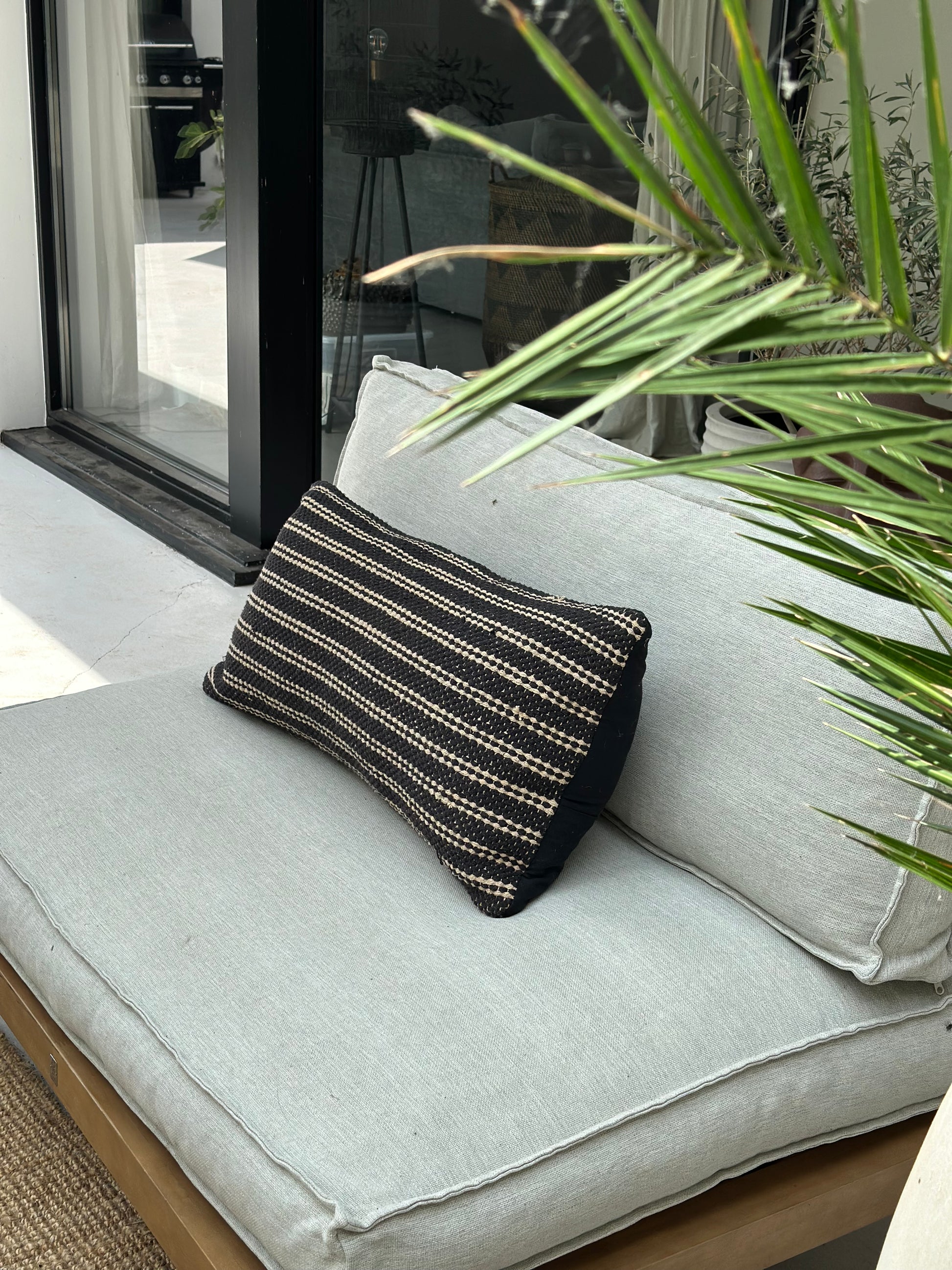 Dit zwart-ecru gestreepte kussen is dé finishing touch voor elk interieur met lef. De grove weving en het stevige materiaal van 100% katoen geven het kussen een robuuste, natuurlijke uitstraling, terwijl het tijdloze streeppatroon zorgt voor een grafisch accent. Perfect voor op de bank, fauteuil of als statement op je bed.