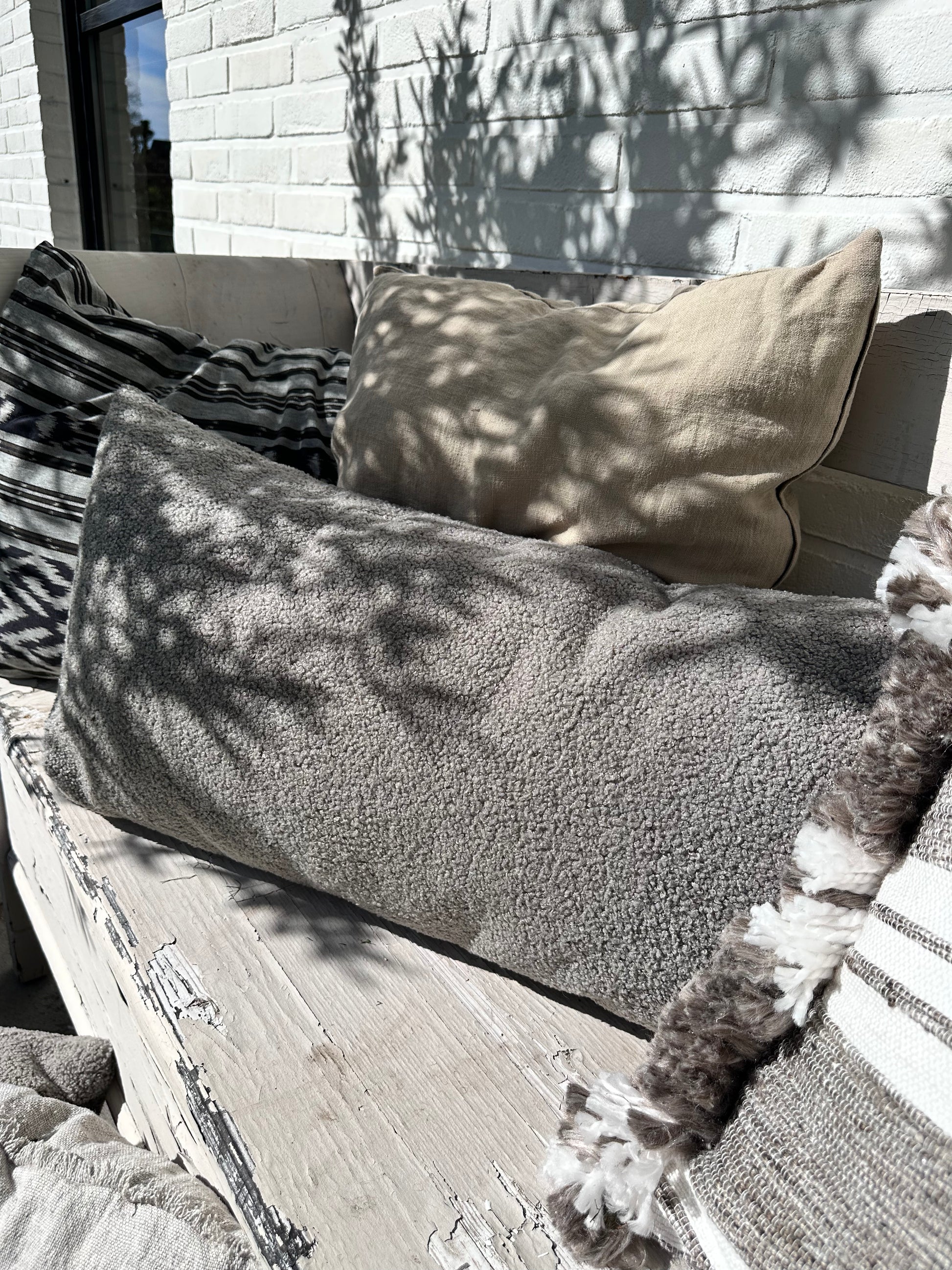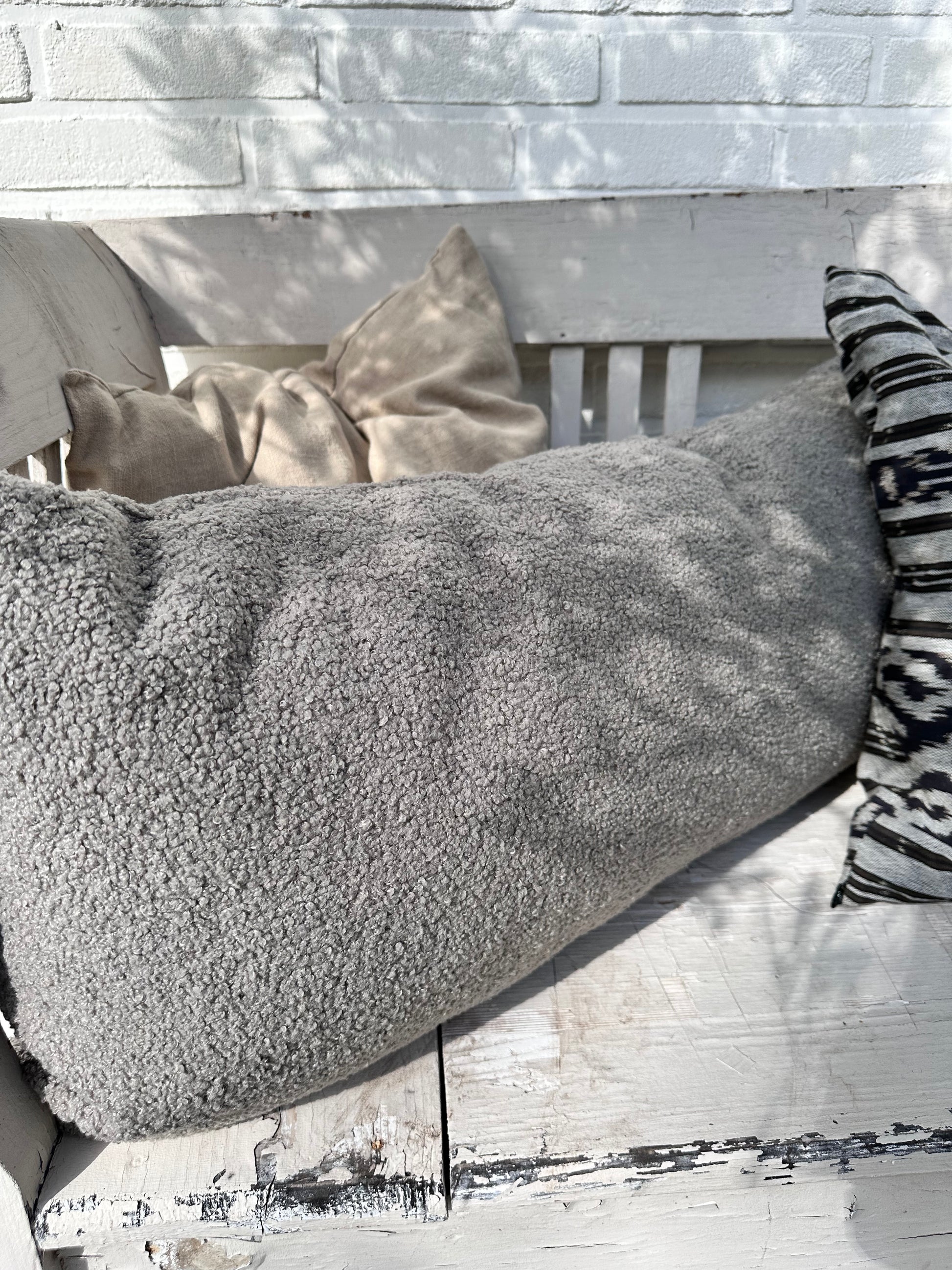 Stoer kussen, maat 40x80cm. in een mooie kleur grijs/taupe.