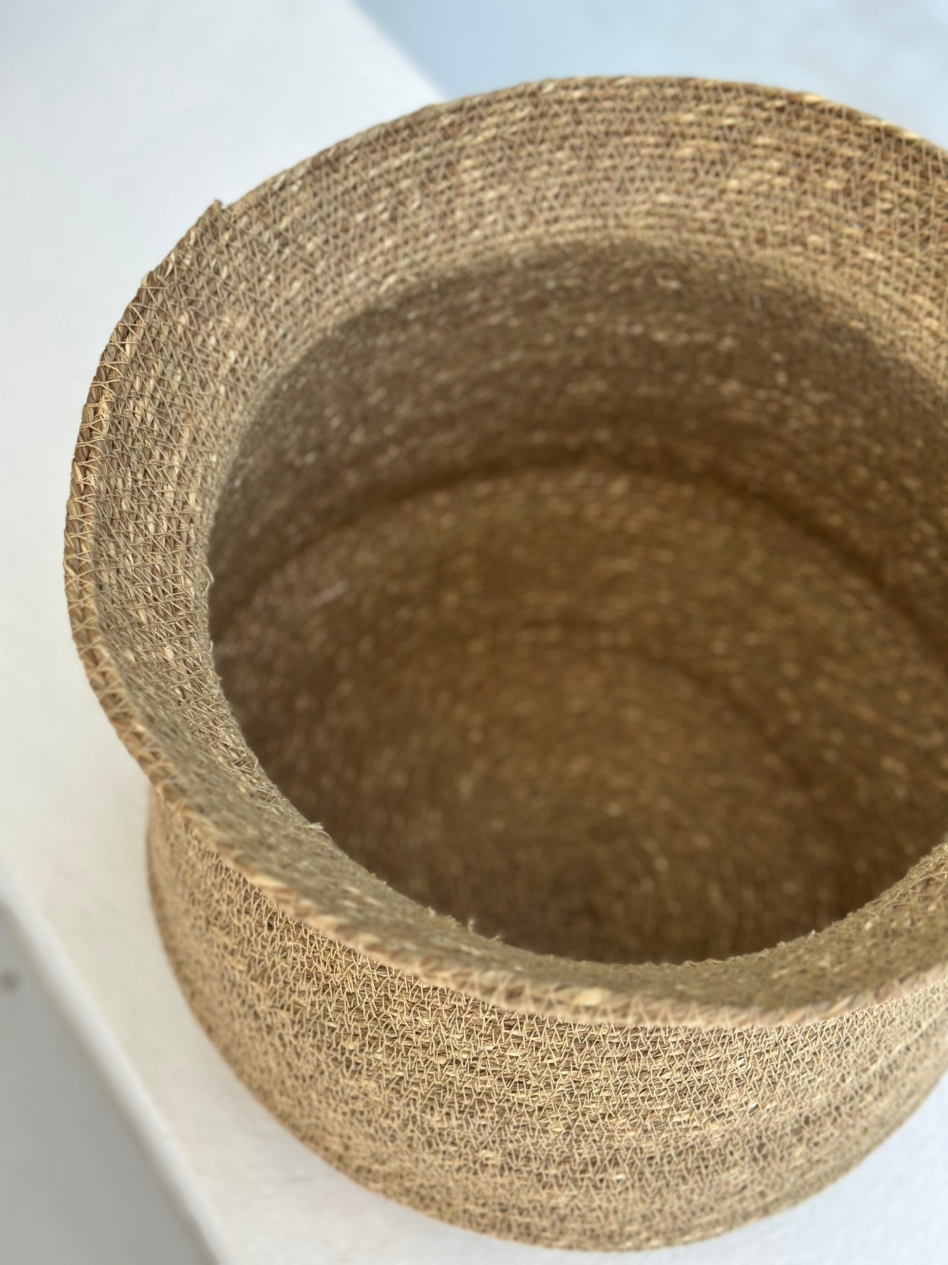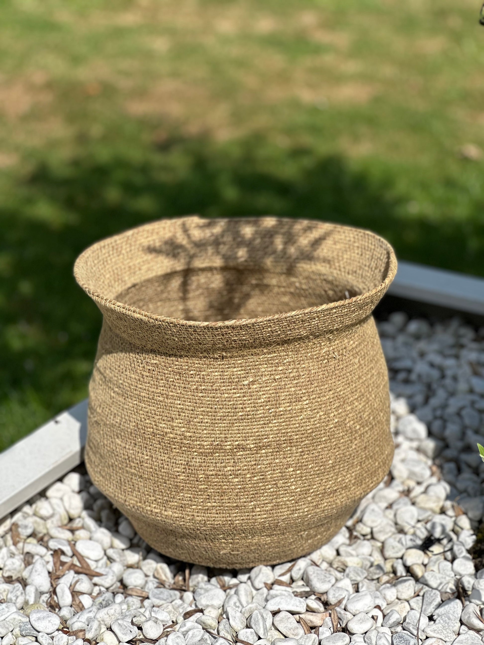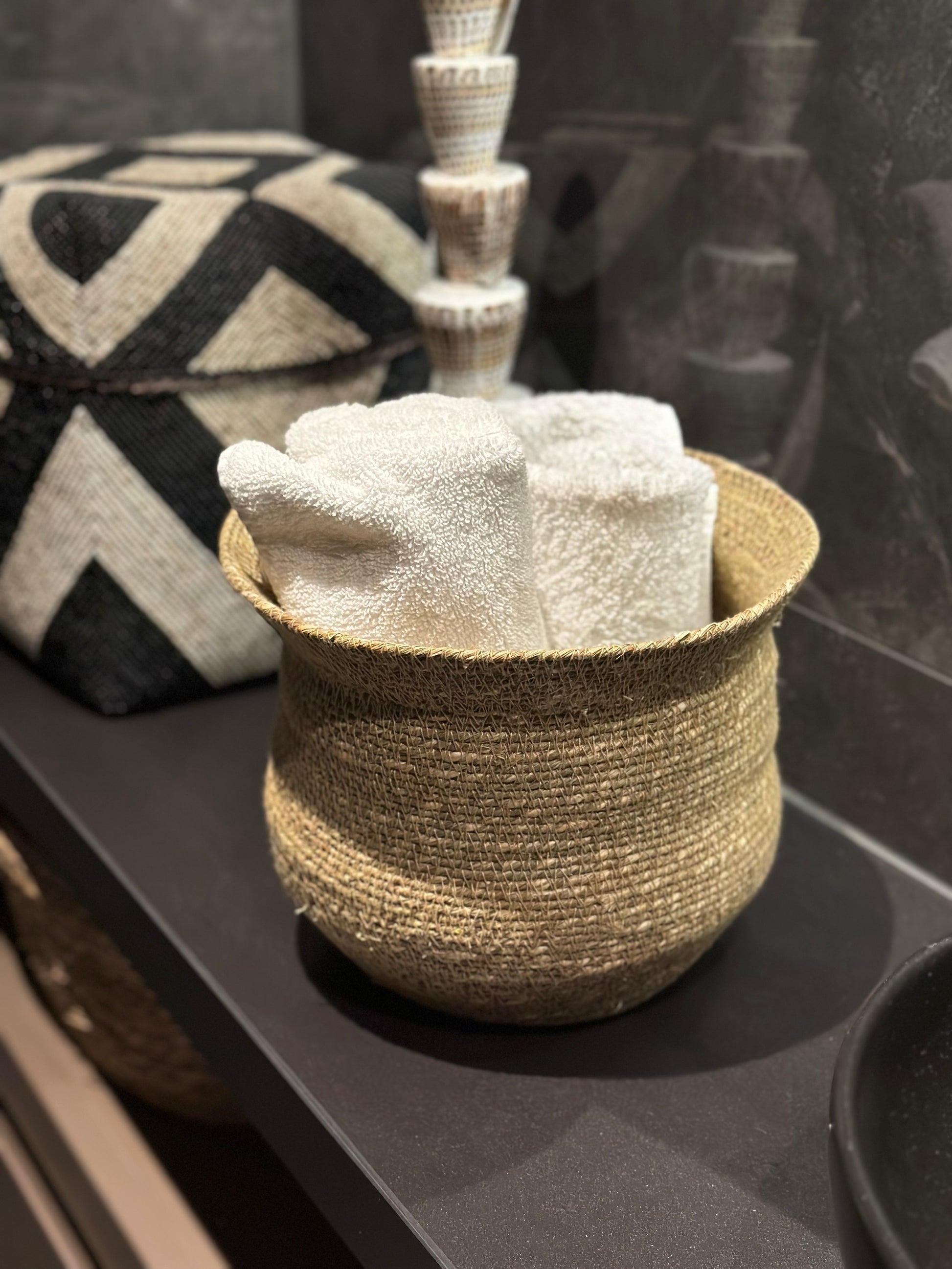 Breng natuurlijke warmte in je interieur met deze handgevlochten mand van zeegras. Perfect als decoratieve plantenmand, opbergmand bij de kapstok of voor het stijlvol opbergen van handdoekjes in de badkamer. Het neutrale materiaal en het fijne design passen moeiteloos in elk interieur – van boho tot modern Scandinavisch.