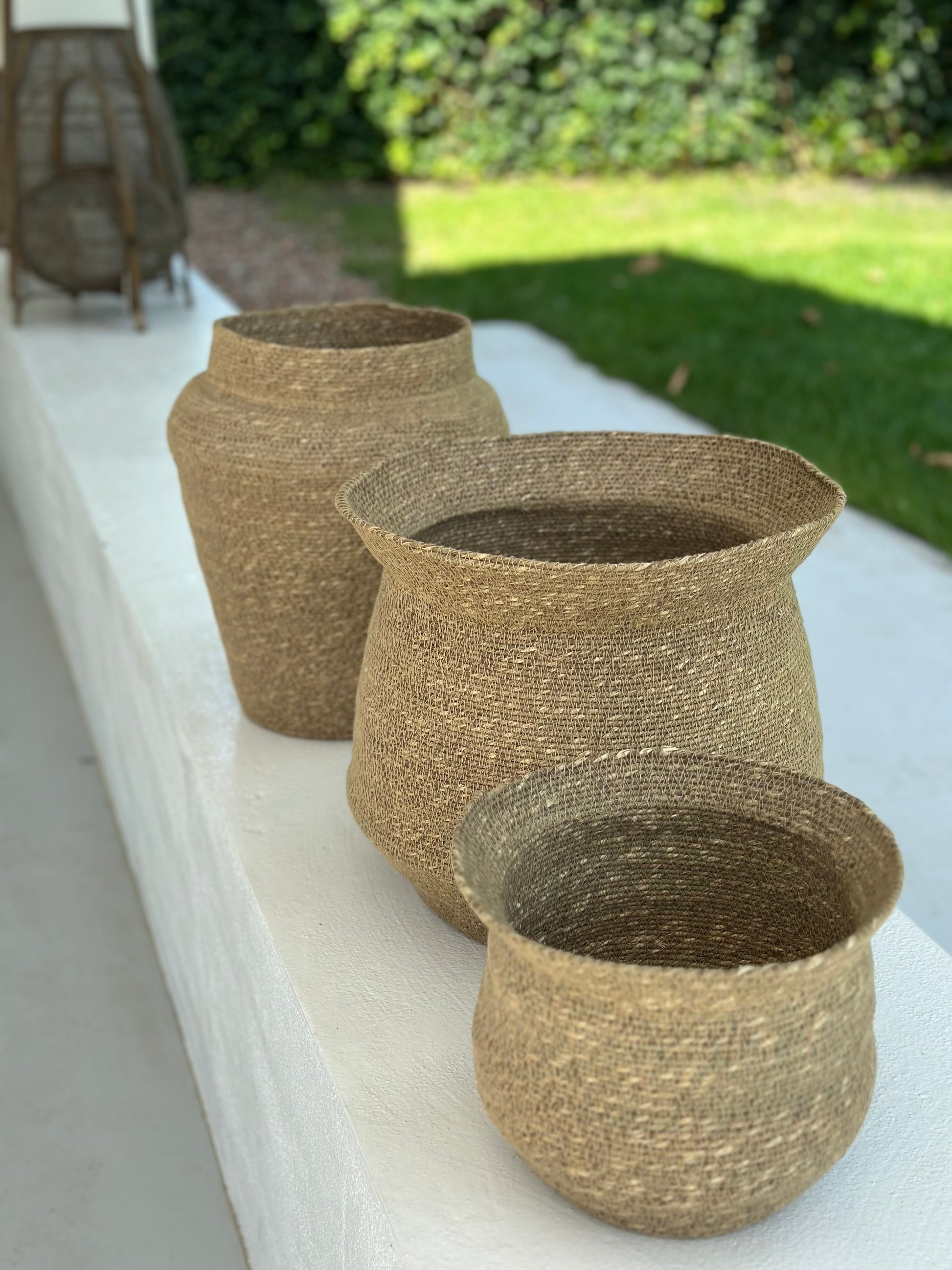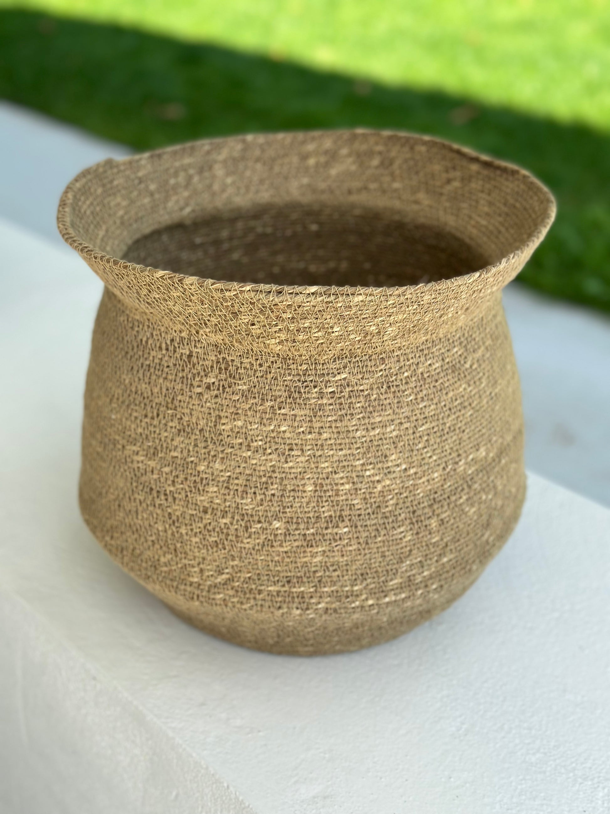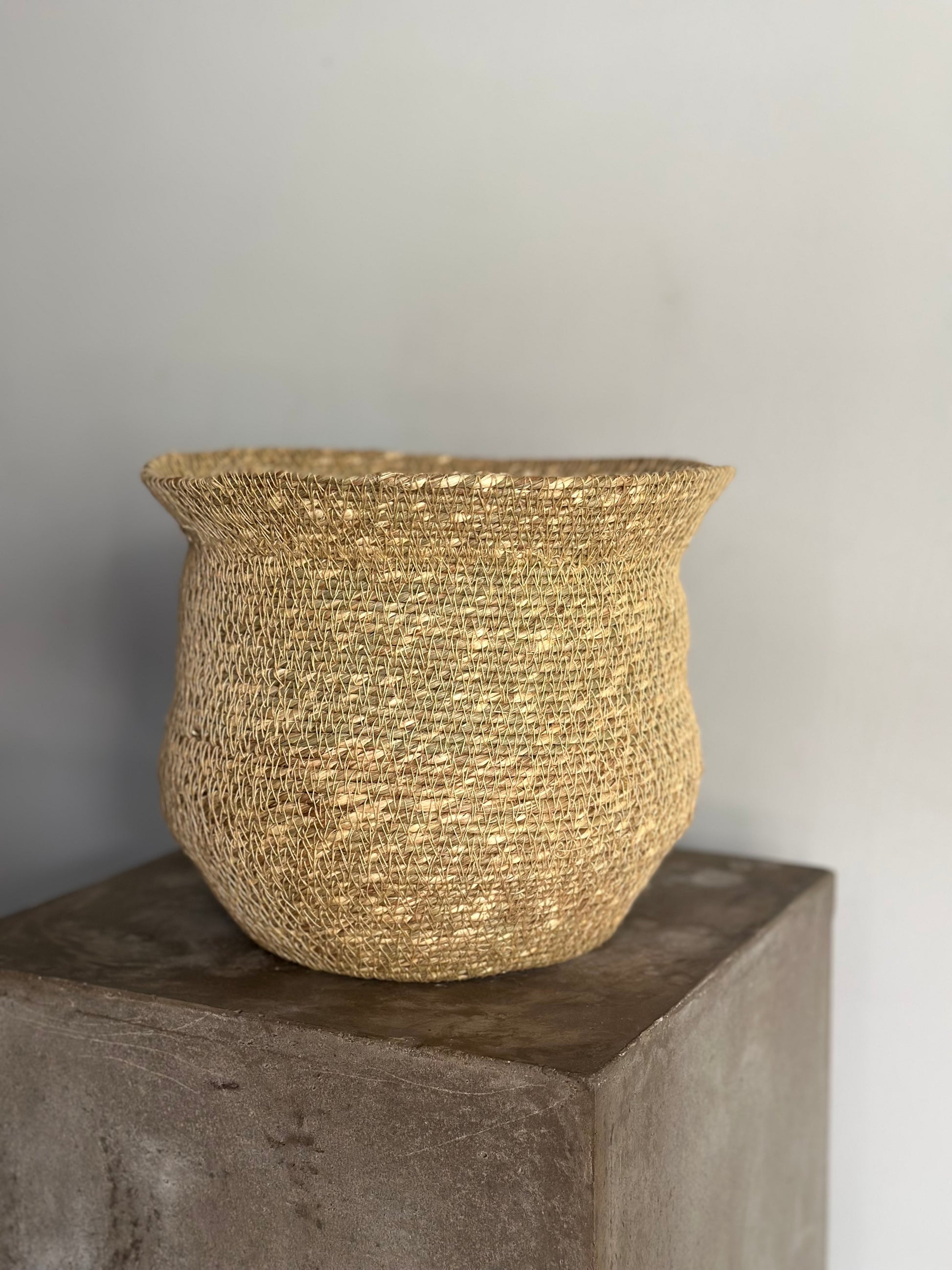 Breng natuurlijke warmte in je interieur met deze handgevlochten mand van zeegras. Perfect als decoratieve plantenmand, opbergmand bij de kapstok of voor het stijlvol opbergen van handdoekjes in de badkamer. Het neutrale materiaal en het fijne design passen moeiteloos in elk interieur – van boho tot modern Scandinavisch.