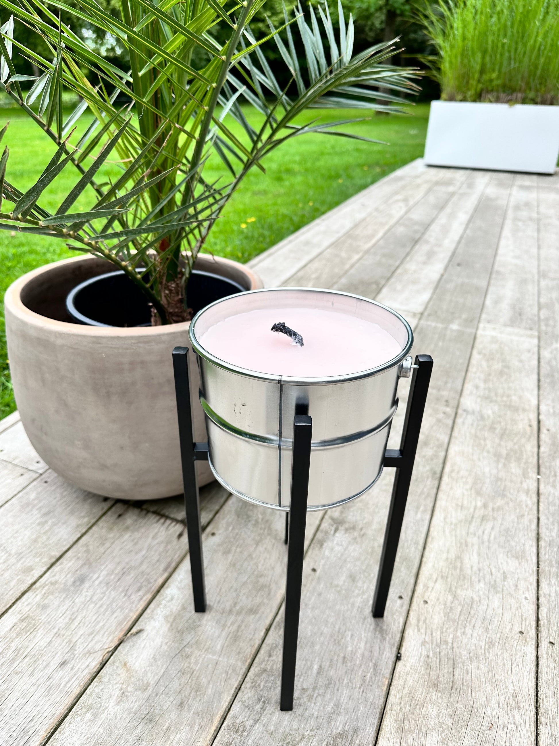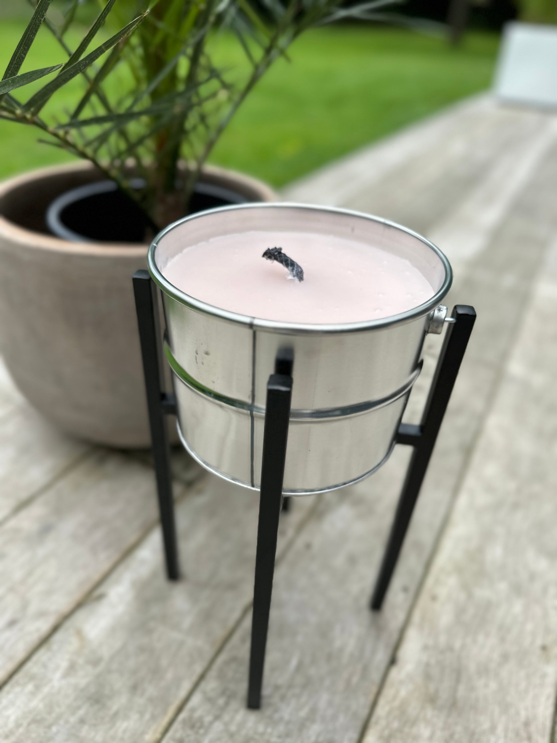 Deze metalen standaard van Rustik Lys is een mooie aanvulling voor de buitenkaars in blik maat S.