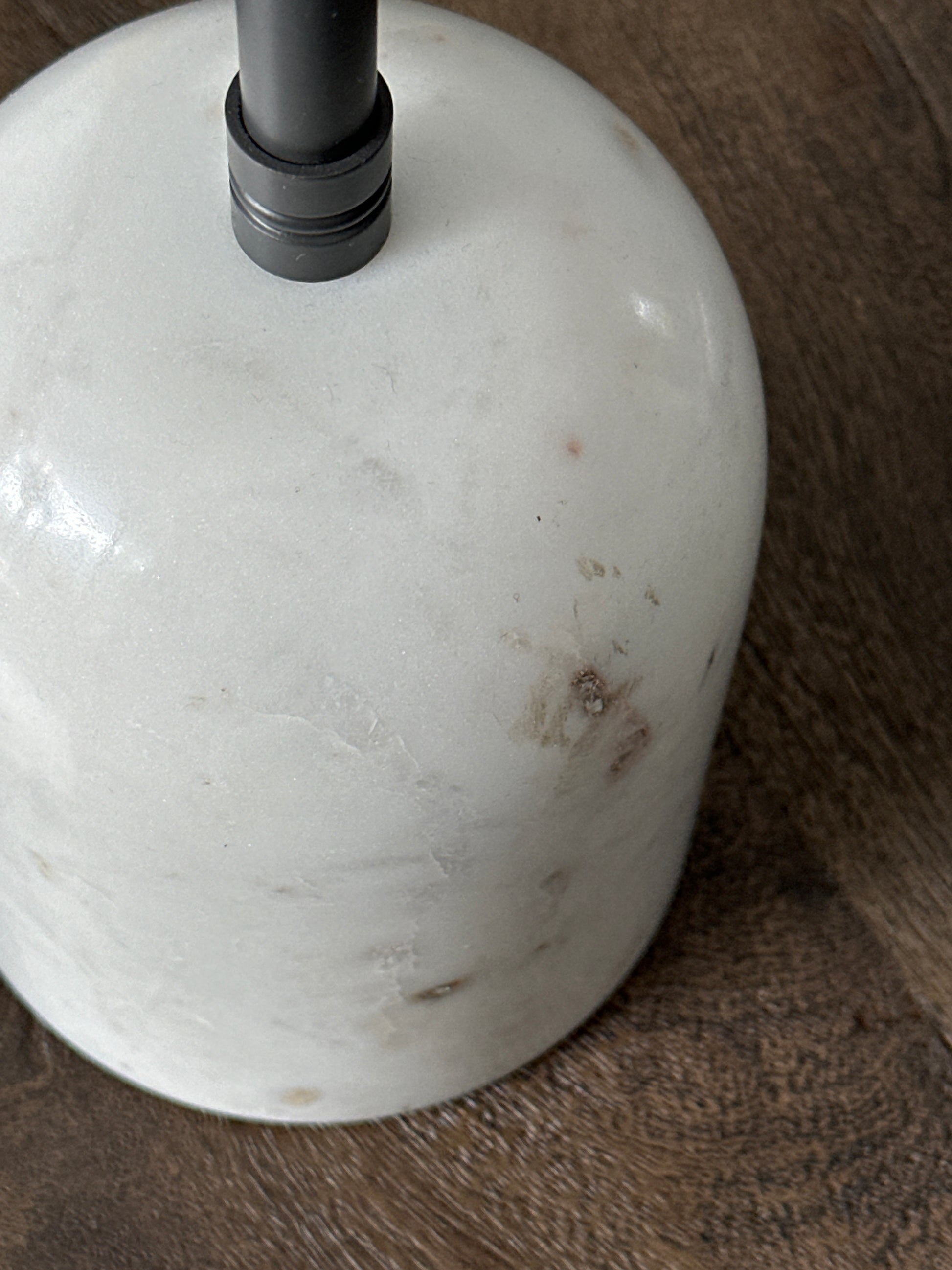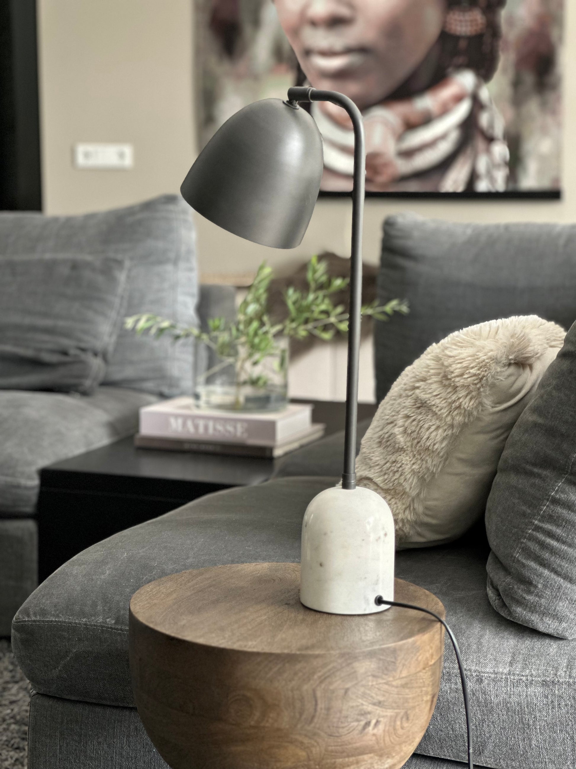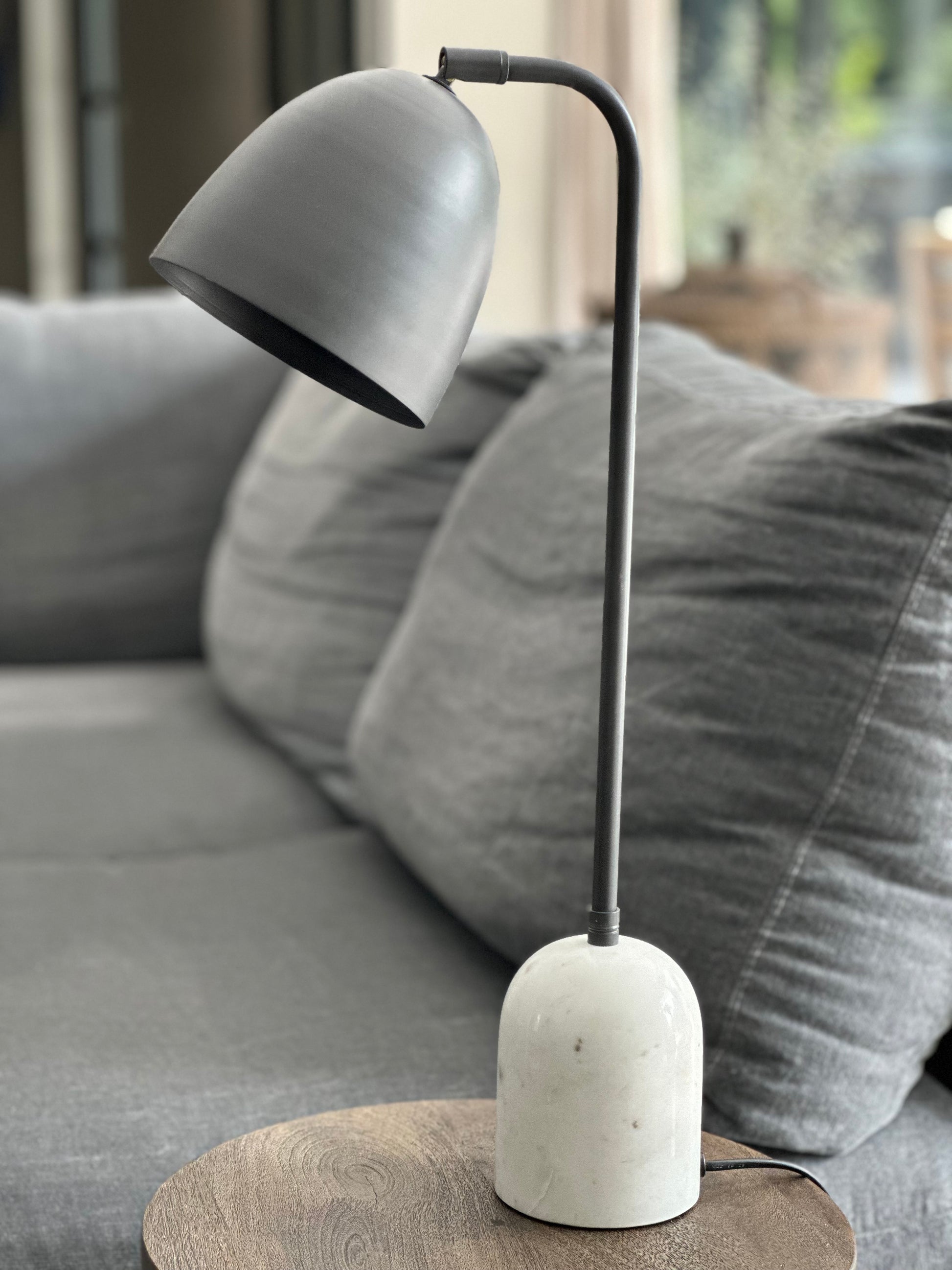 Breng sfeer en klasse in je interieur met deze elegante tafellamp. De lamp combineert tijdloze materialen met een moderne uitstraling. De stevige, massieve voet is gemaakt van echt marmer – een natuurproduct dat elke lamp uniek maakt. Het slanke armatuur is uitgevoerd in antracietkleurig staal voor een strakke, industriële look.