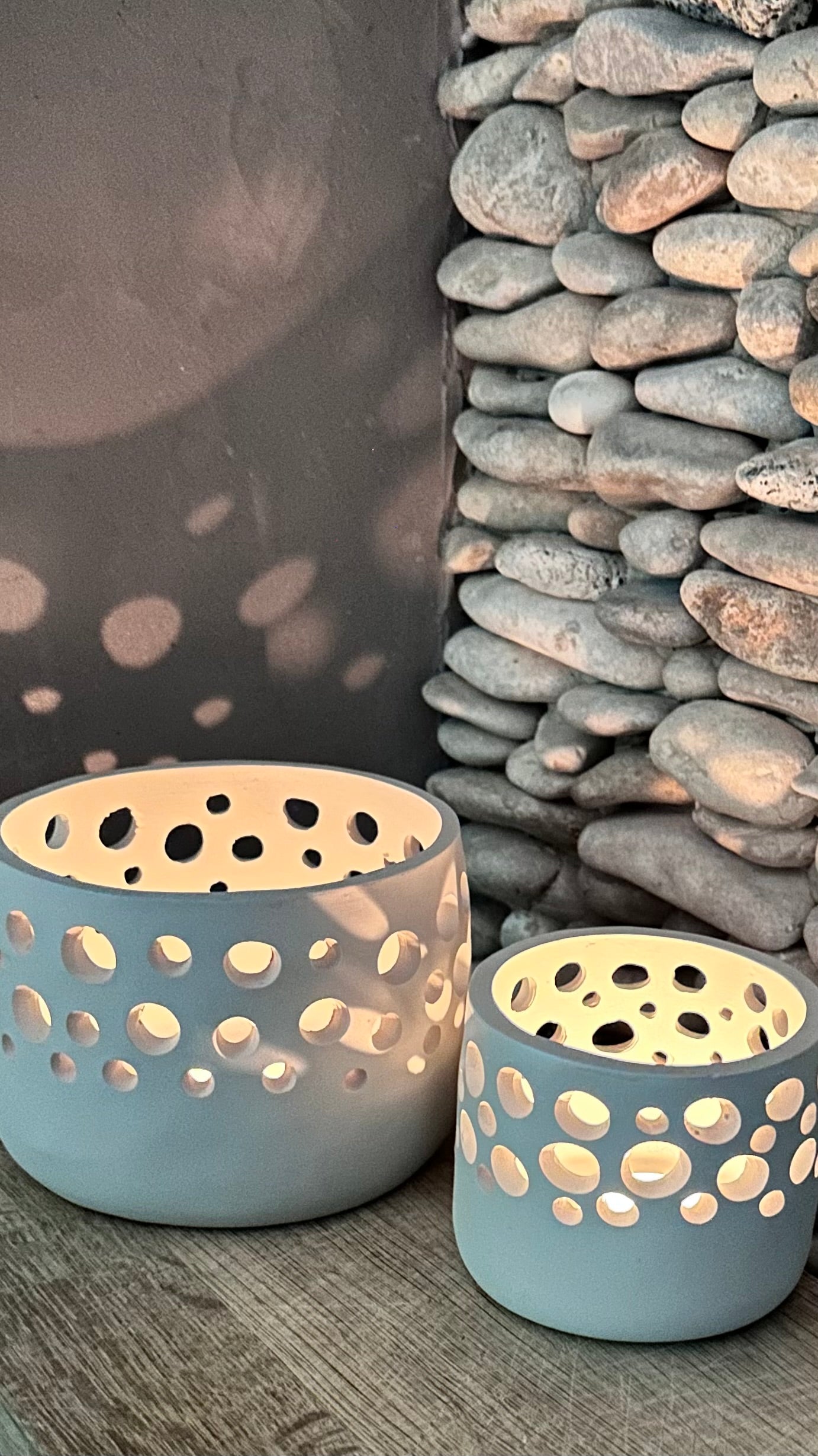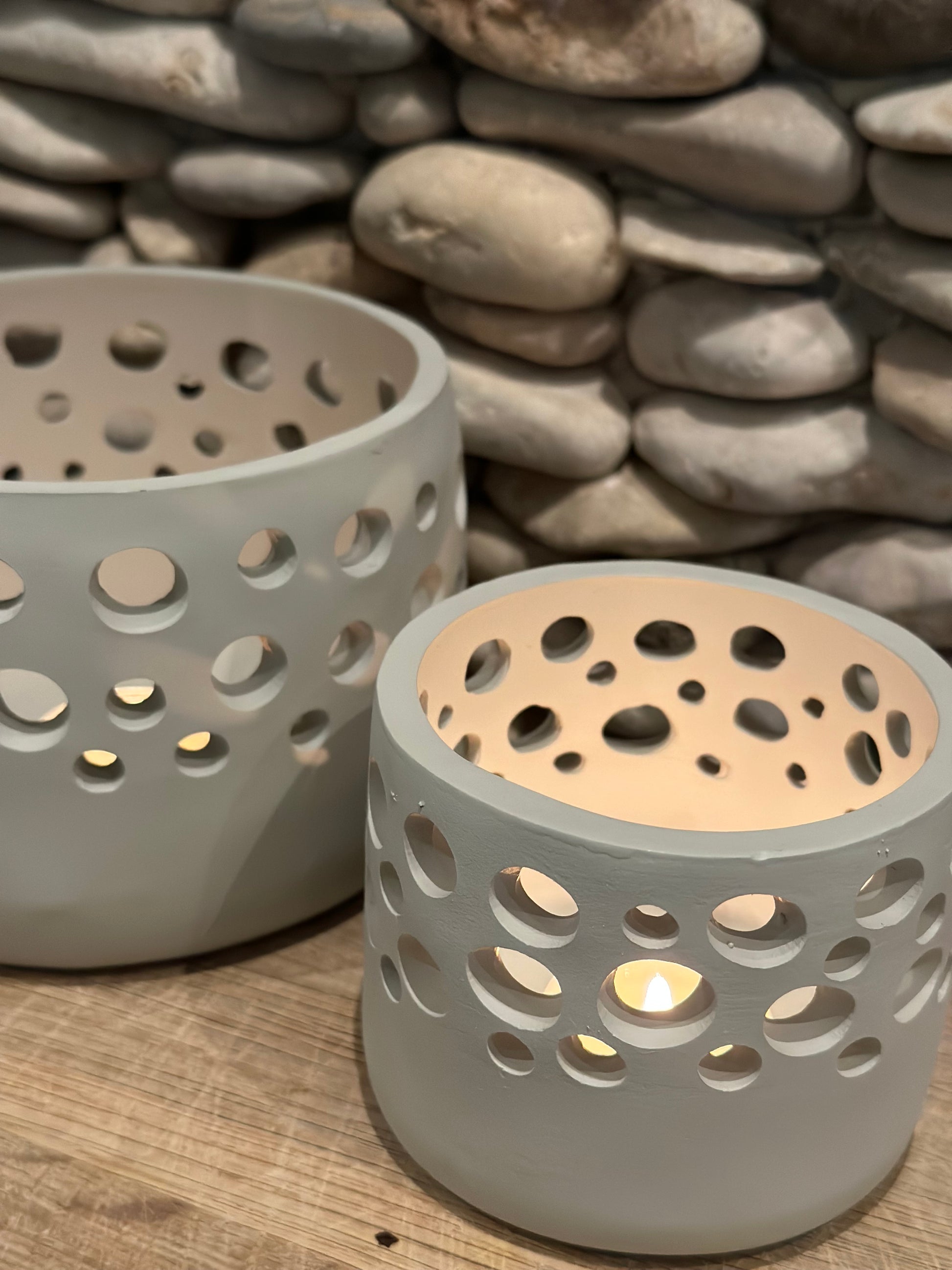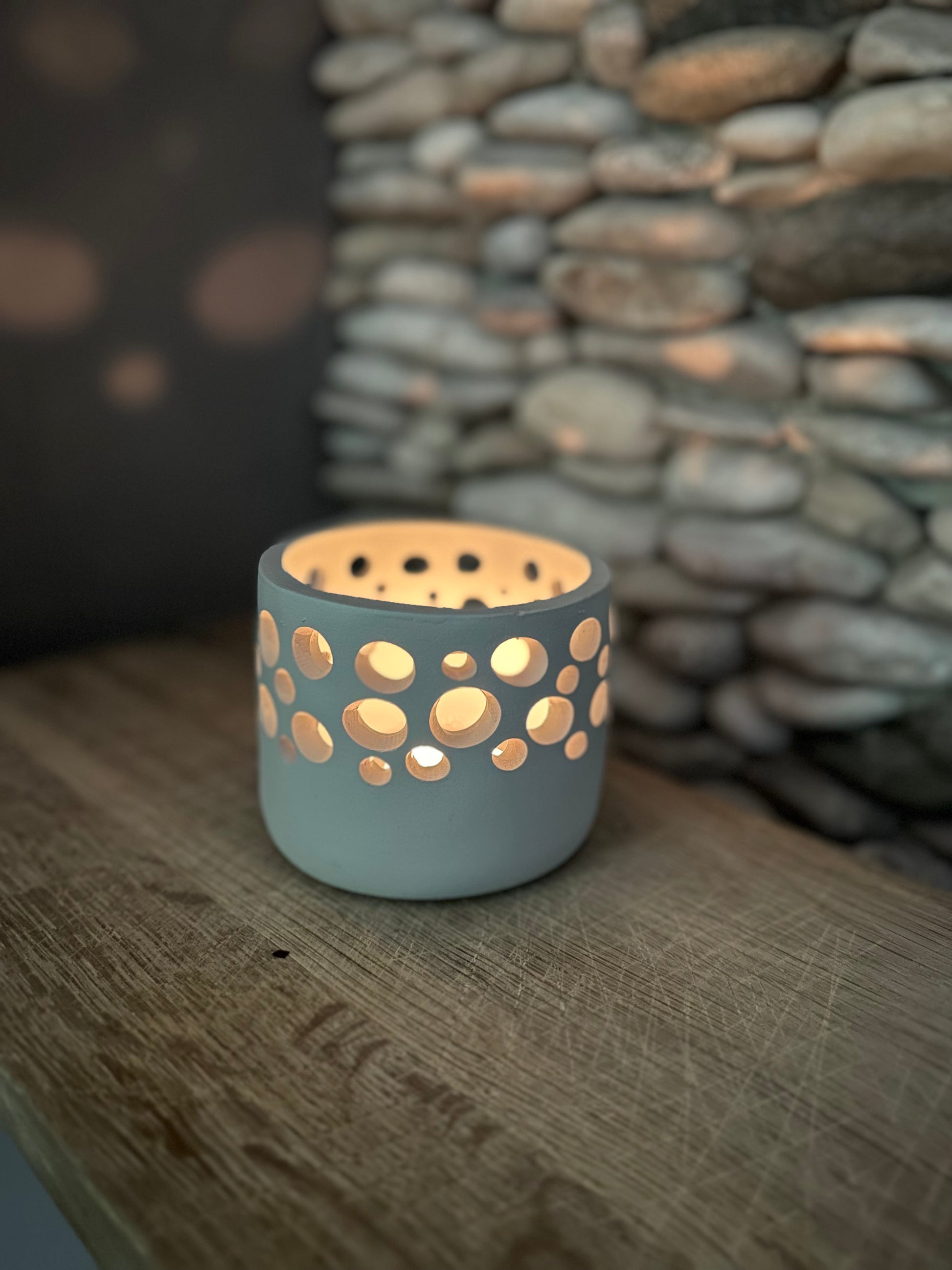 Deze theelichthouder van Leeff is niet alleen mooi om naar te kijken, maar geeft door de gaatjes ook een prachtige ambiance wanneer hij brandt. De warme gloed die hij verspreidt, voegt een vleugje gezelligheid toe aan elke ruimte. Perfect voor een ontspannen avond thuis of tijdens een etentje met vrienden.