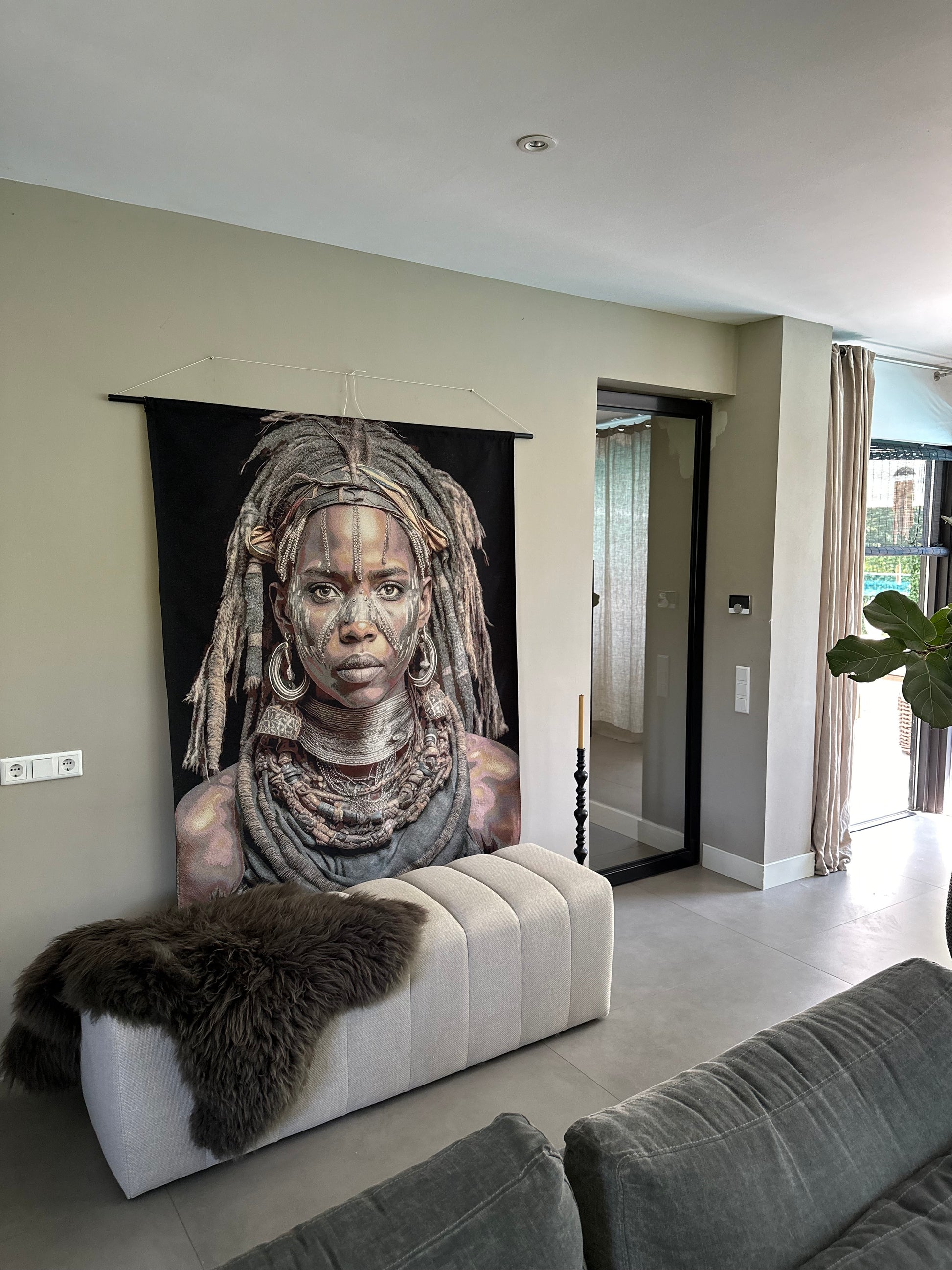 Breng sfeer en stijl in je interieur met dit adembenemende wanddoek van een dikke kwaliteit geweven stof. Dit stijlvolle kunstwerk voegt niet alleen kleur toe aan je interieur, maar creëert ook een warme en uitnodigende sfeer.