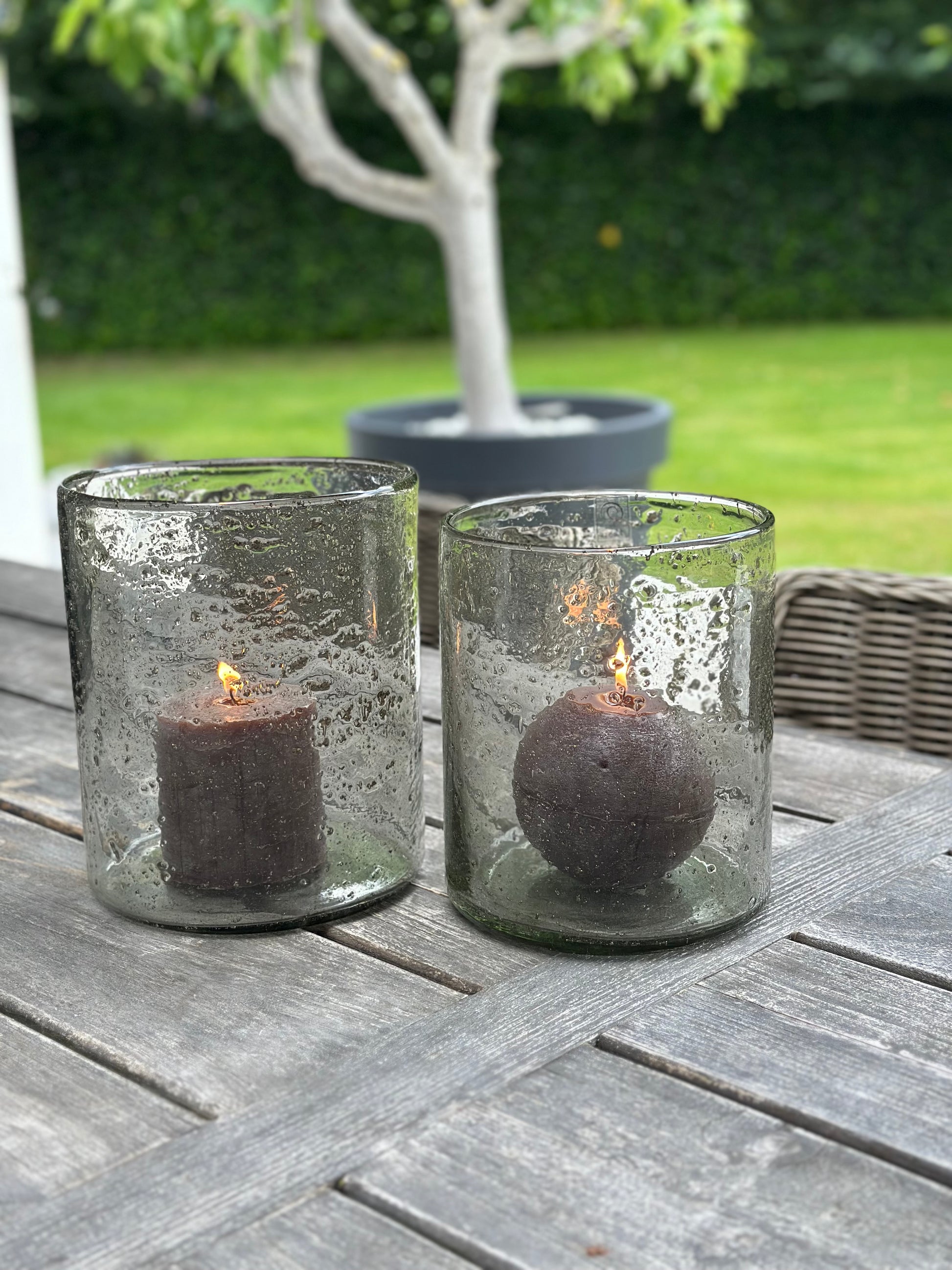 Een prachtig windlicht voor een gezellige sfeer in huis of buiten op je terras of balkon. Het is gemaakt van glas in een warme gloed.
